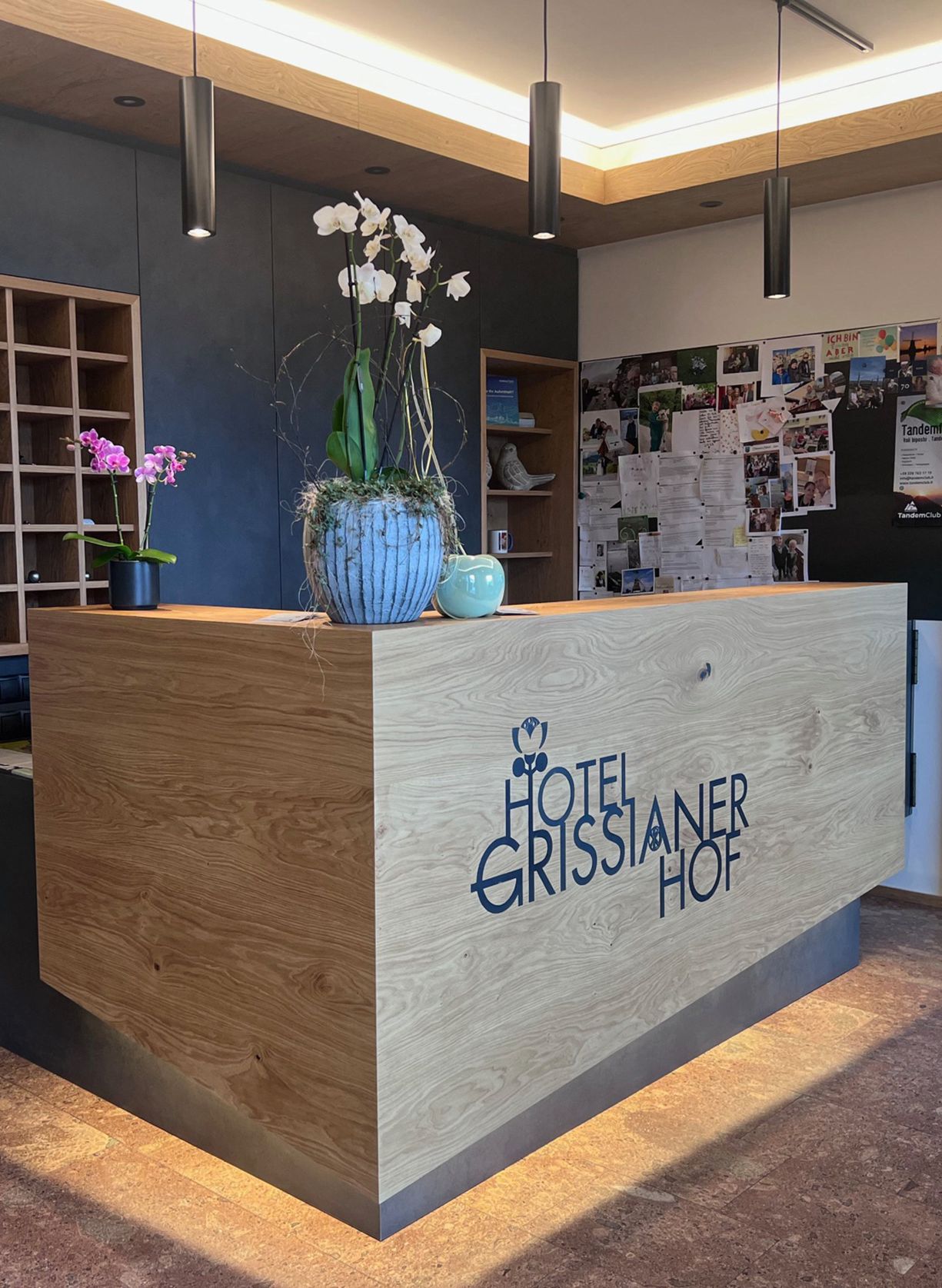 Unser kleines, familiäres Hotel Grissianer Hof liegt auf einem landschaftlich einzigartigen Aussichtspunkt im Meraner Land. Genießen Sie den atemberaubenden Blick auf die umliegende Bergwelt bis hin zum Rosengarten. Umgeben von Wäldern und Wiesen, begleitet nur vom Zwitschern der Vögel – ein echter Traum für Naturliebhaber.