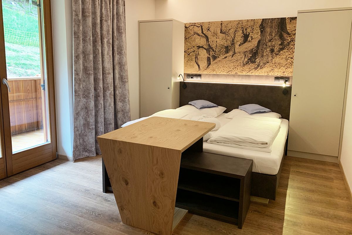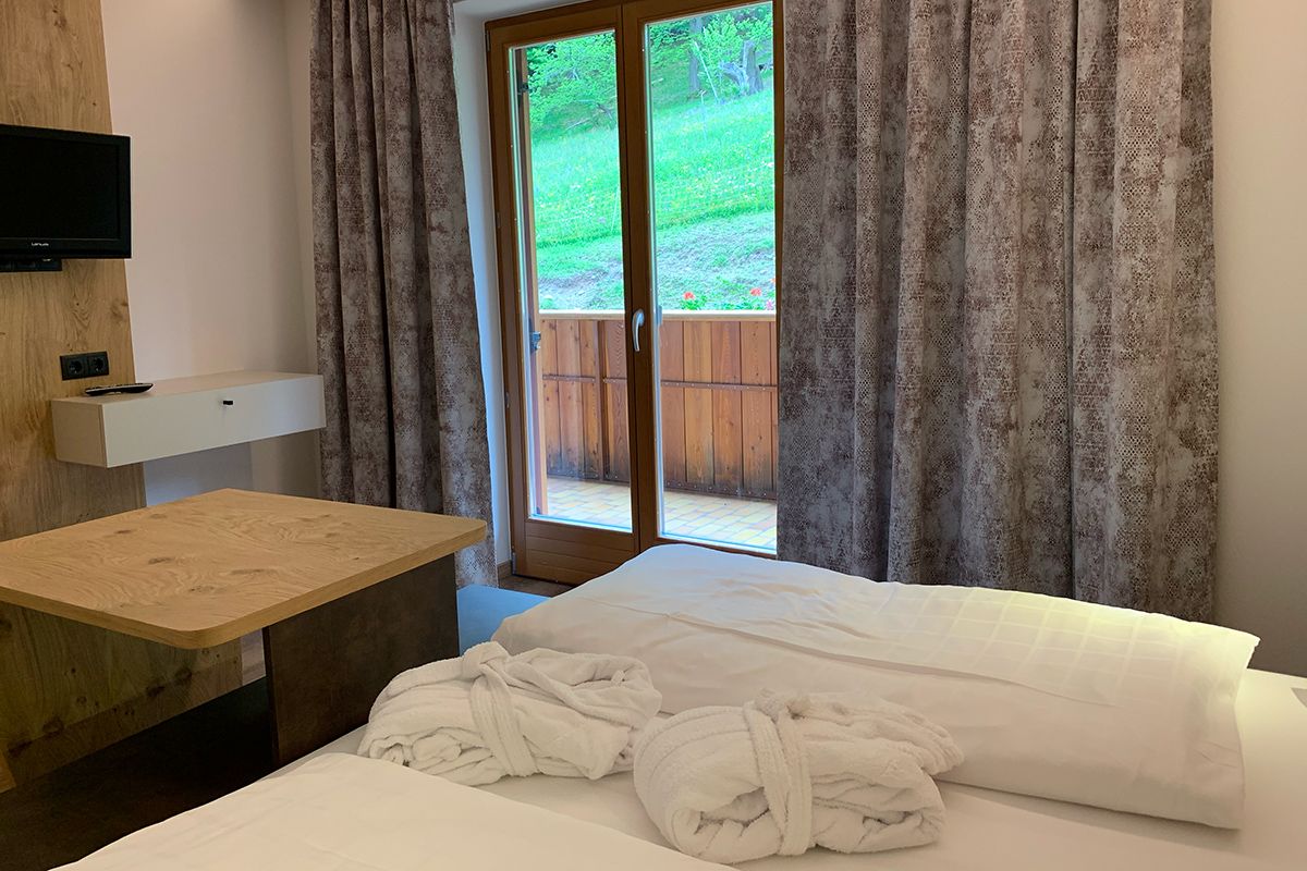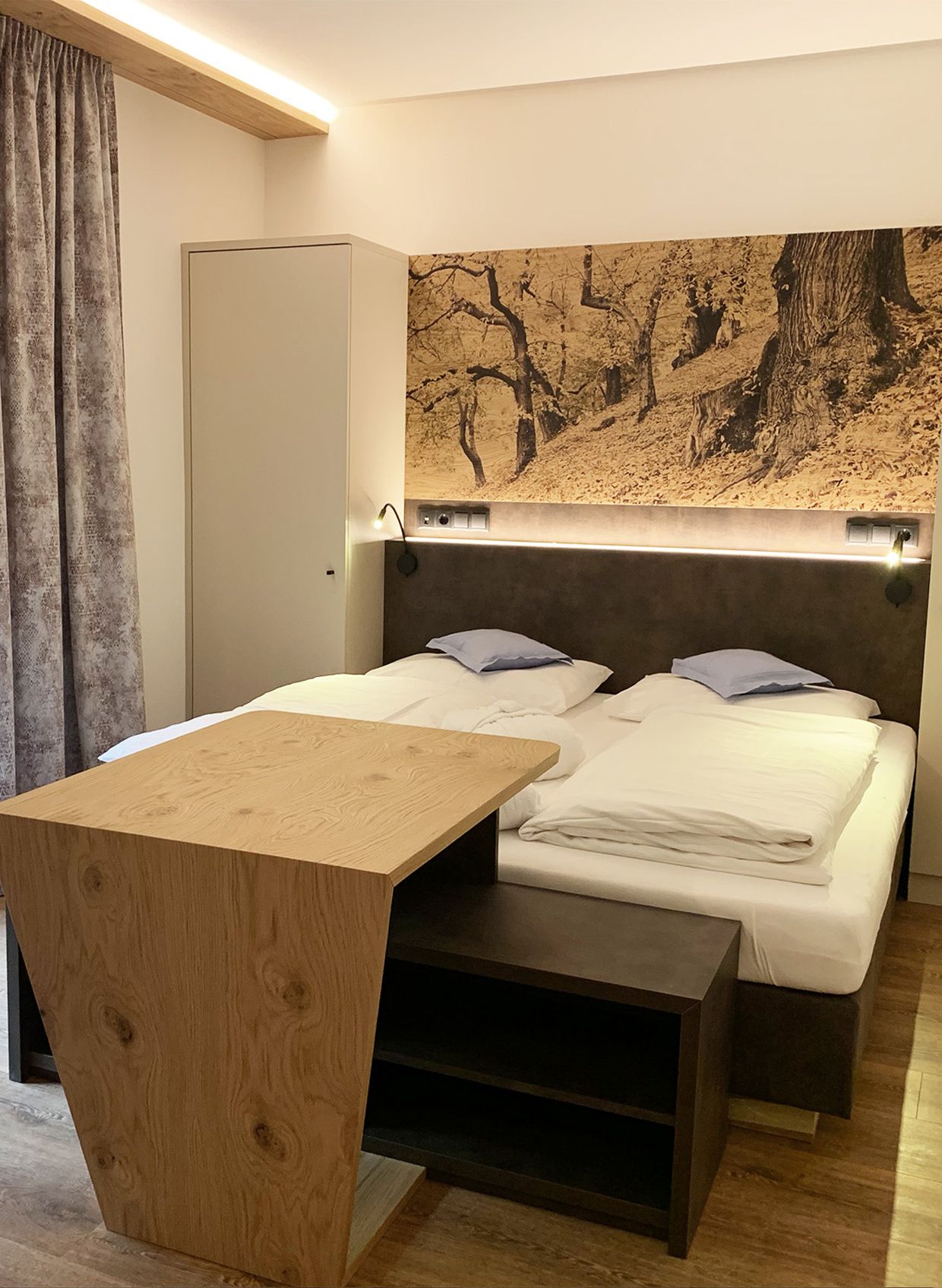 Komplett neues Zimmer mit Holzoptik Designboden, gemütliches Boxspringbett, hochwertige Einbaumöbel, Wandsafe, Flachbildfernseher mit Sat-TV, Balkon mit Blick auf die Kastanienheine, Tisch und Stühle sowie Liegen zum genießen der Nachmittagssonne, Badezimmer mit WC, Dusche und Haartrockner, Bademäntel und Badeslipper, Kostenloses WLan.