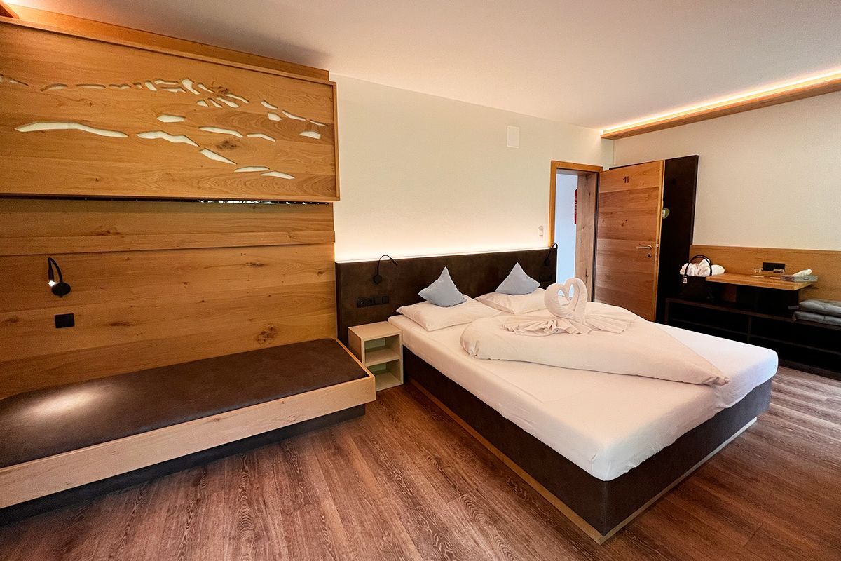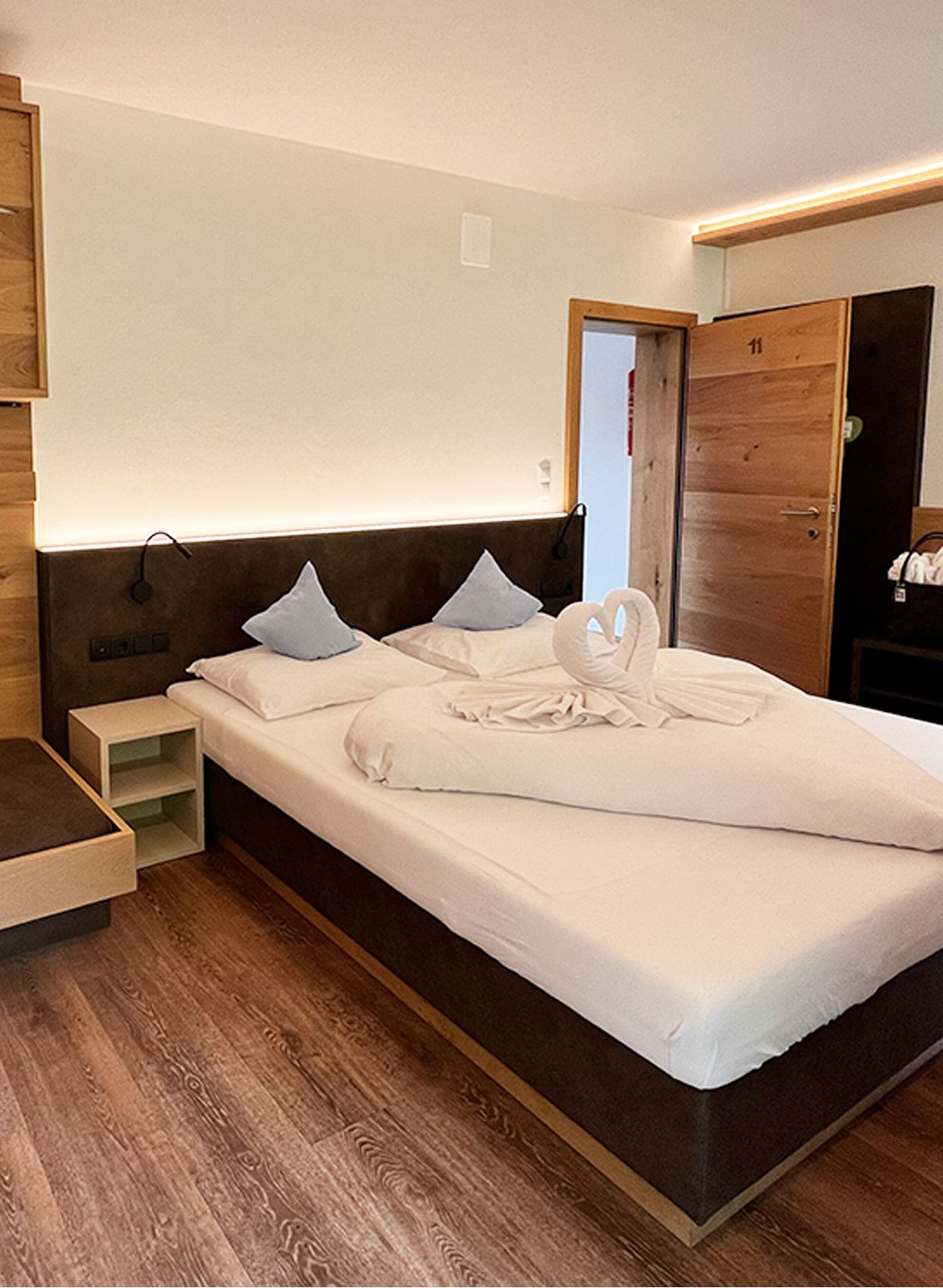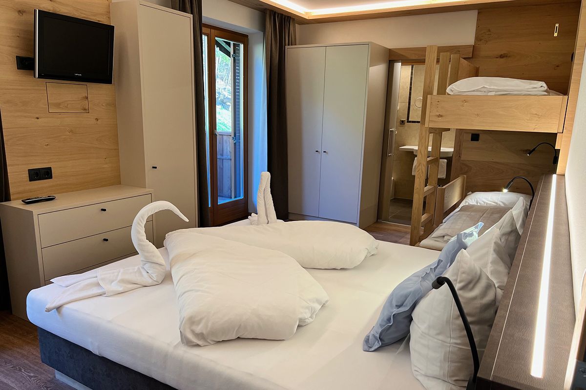 Komplett neues, helles Zimmer mit Holzoptik Designboden, gemütliches Boxspringbett, hochwertige, moderne Einbaumöbel, Wandsafe, Flachbildfernseher mit Sat-TV, zwei Zugänge zum großen Balkon mit Blick auf die Kastanienheine, Tisch und Stühle sowie Liegen zum genießen der Nachmittagssonne, Leseecke erweiterbar zum Stockbett für zwei Kinder, Badezimmer mit WC, Dusche und Haartrockner, Bademäntel und Badeslipper, Kostenloses WLan.