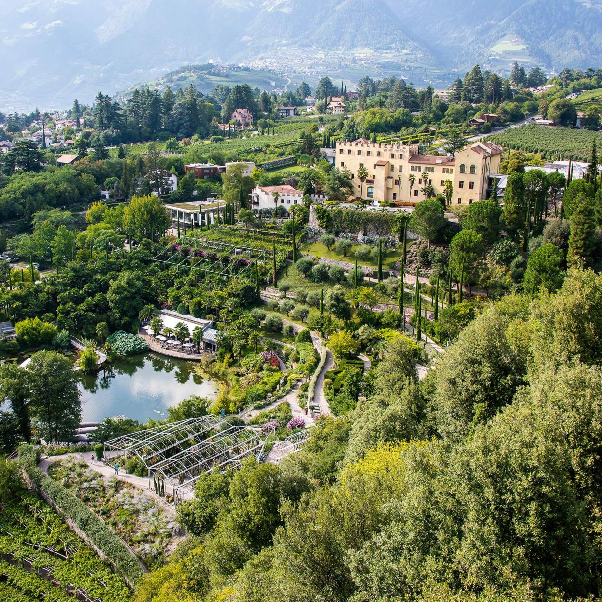 Am sonnigen Hang oberhalb von Meran wo einst Kaiserin Sissi flanierte, erstrecken sich die blühenden Gärten von Schloss Trauttmansdorff. Im Zentrum der Gärten thront das prachtvolle Schloss.